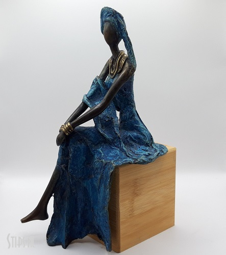 African Lady in blue in brons – randzit