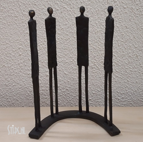 Het decoratieve gebronsde beeld Grow Together bestaat uit vier gestileerde figuren die geplaatst zijn op een voetstuk in de vorm van een halve cirkel.