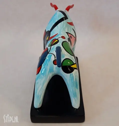Het ontwerp is van kunstenaarscollectief Art24 Design Group die zich vooral gespecialiseerd hebben in het maken van kleurrijke dierenbeelden. Dit leuke en vrolijke kunstwerkje is bedoeld voor binnen. Wilt u hem toch buiten zetten dan moet hij met waterdichte lak worden behandeld.