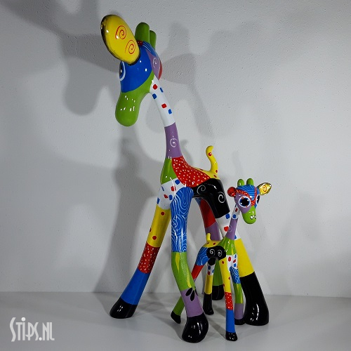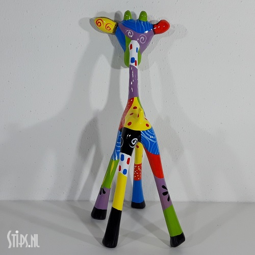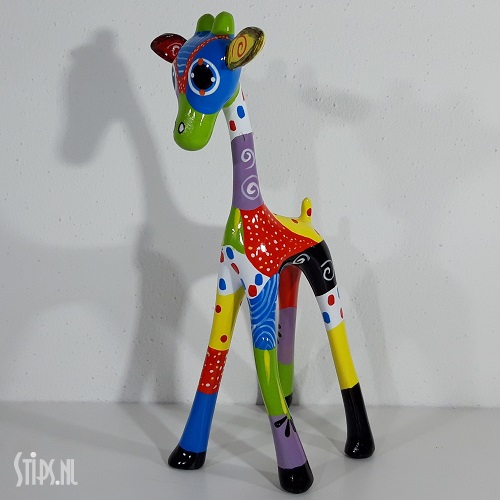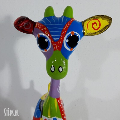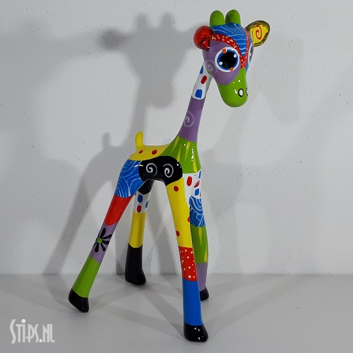 Van top tot teen prachtig gedecoreerd met stippen, strepen en figuren in bijna alle kleuren van de regenboog is onze giraf een lust om naar te kijken. Een huisdier en tegelijk een kunstwerk waar je vrolijk van wordt. En omdat er 3 maten zijn is er altijd wel eentje die qua grootte in het nieuwe gezin past!