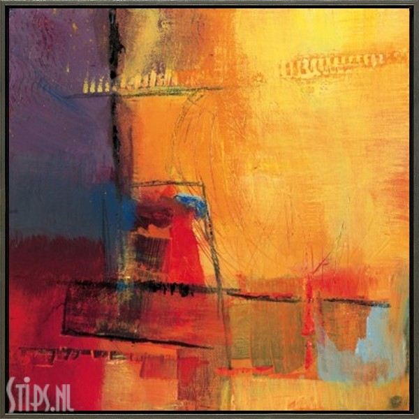 Een passievolle intensiteit in opvallend warme gele, rode en paarse kleuren zien we op het schilderij Abstract Day van Bea Danckaert. De sprekende sfeervolle compositie tesamen met de subtiele belijning in het zwart, maken het schilderij dynamisch en toch vol warmte en intensiteit. Opvallend is het kleurgebruik. Maar weinig schilders zijn in staat de kleuren zo levendig op het doek te krijgen. Danckaert is hier uniek in.