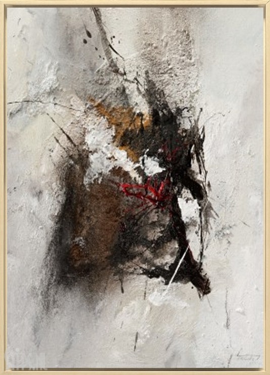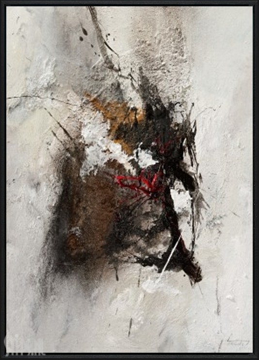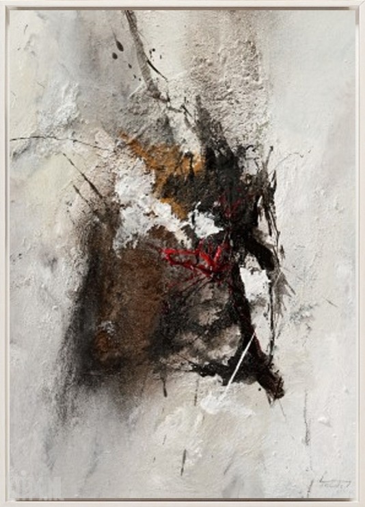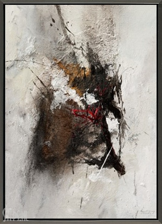 Het warme Garachico op het zonovergoten Tenerife vormde voor Isolde Folger de inspiratiebron tot het maken van dit schilderij. Het temperament wat dit dorpje zo eigen is, de witte stenen huizen, de structuren van de rotsen… ze komen allemaal tot uitdrukking in dit abstracte moderne werk.  Het rustige wit op de achtergrond vormt de perfecte basis voor de explosie van temperament uitgedrukt in grijs, zwart, bruin en een klein beetje rood. De kleurstelling maakt het werk zeer toegankelijk en ook heel goed passend in eigentijdse industriële interieurs.
