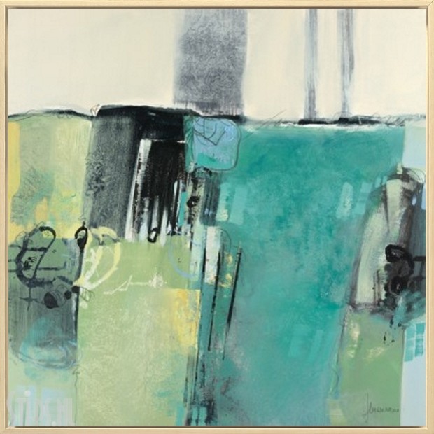 Dit giclée-schilderij van Francesco Cusumano draagt de titel Prato II en is een vrije abstracte interpretatie van een groen weidelandschap. Met grote vlakken, lijnen en verschillende transparanties is het een fascinerend doek, wat door zijn rustige kleurstelling van creme-wit en blauwgroentinten zeer geschikt is in hedendaagse interieurs.