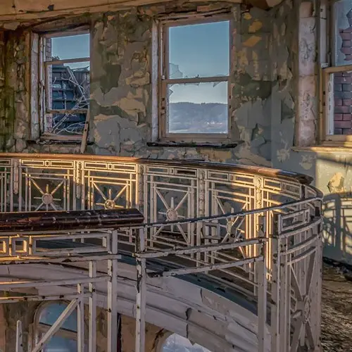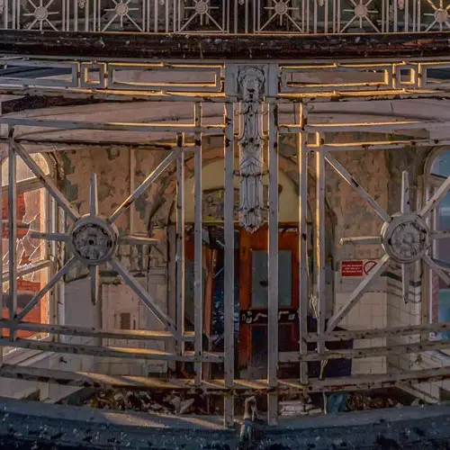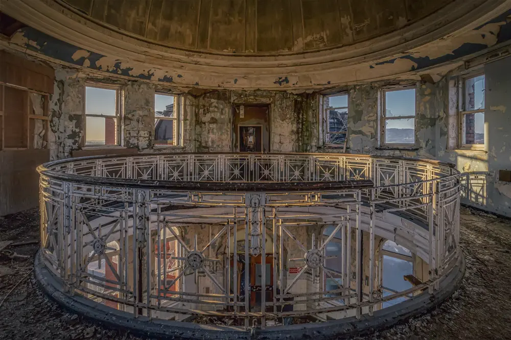 Dit gelimiteerde en gesigneerde fotokunstwerk van James Kerwin draagt de titel BRI. Het toont ons een imposant verlaten gebouw met koepel, afbrokkelende muren en een hekwerk deels in tact… Sporen van verlatenheid, oudheid en toch van een intense schoonheid.